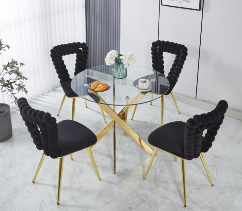 black and gold Modern chair with iron tube legs, soft cushions and comfortable backrest, W234P271308