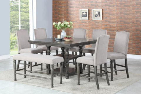 Styling details include turned legs counter chair legs and shield back with nailhead trim