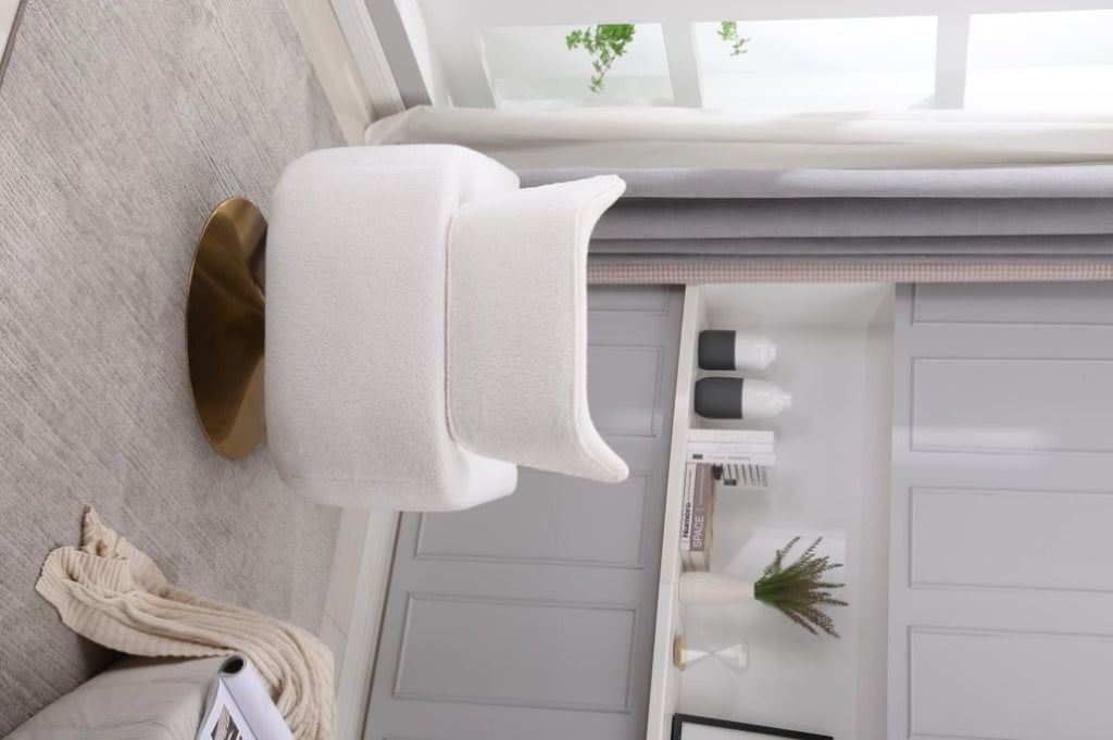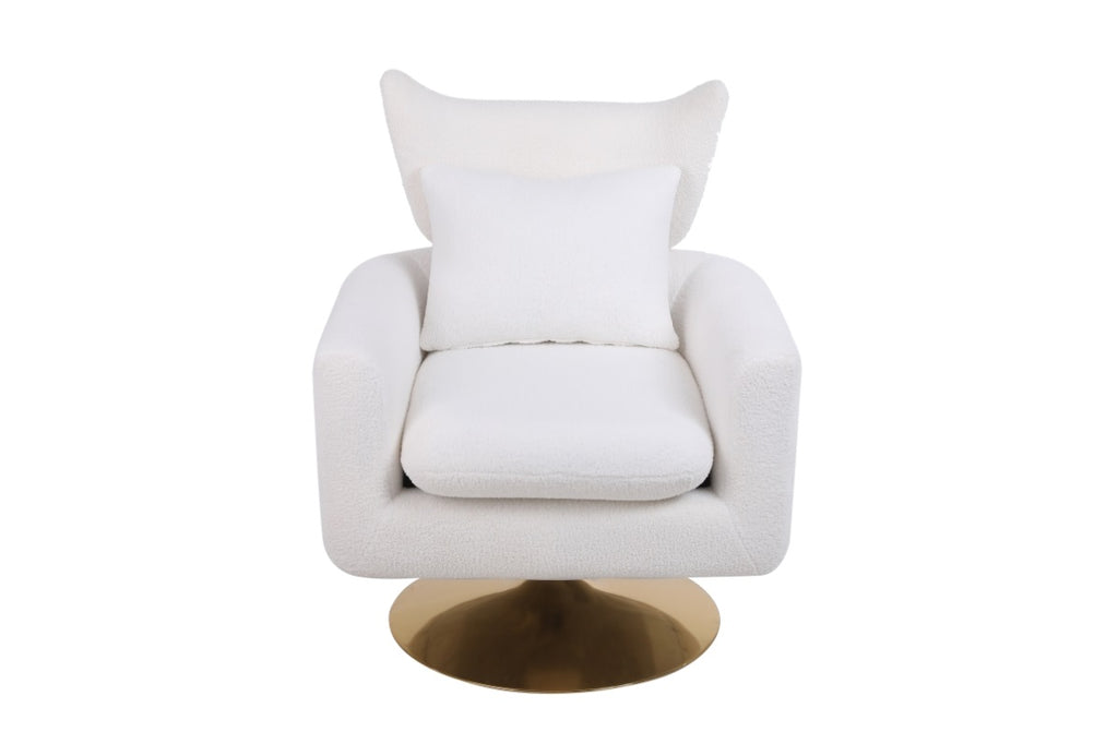 Classic Mid-Century 360-degree Swivel Accent Chair, White Teddy Fabric W1361104579