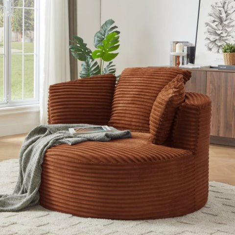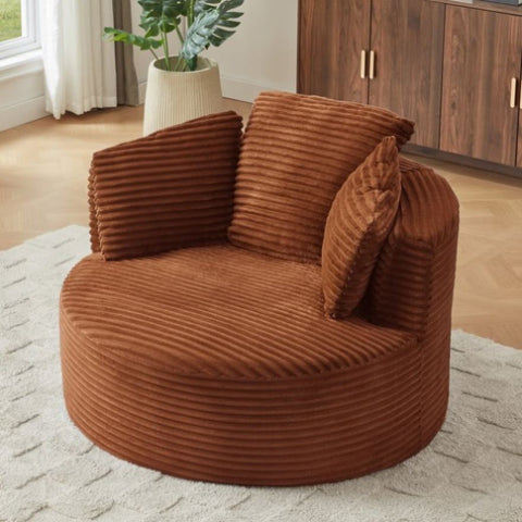 Compressible Corduroy Round Chair with Cushioned Backrest - Modern Comfort Seating for Living W2339P323623
