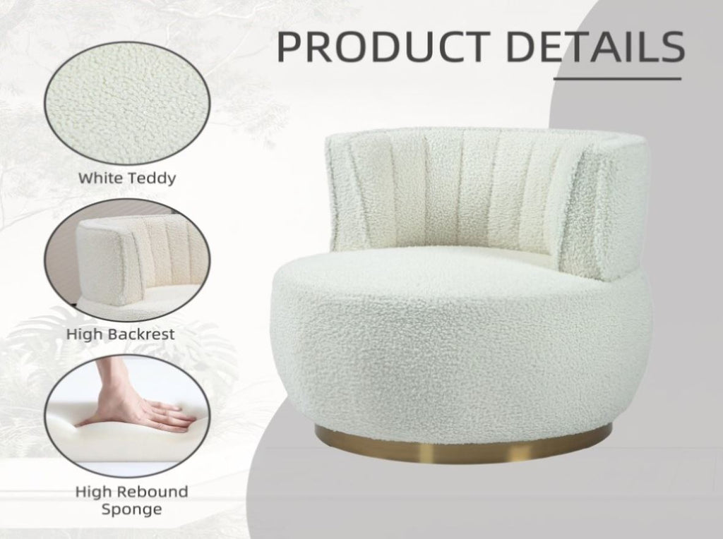 Designed for your comfort, this elegant swivel chair comes with Teddy which is soft enough and skin-friendly. Equipped with comfortable high-density foam cushions provides ultimate comfort and support, which is the perfect centerpiece for your nursery.