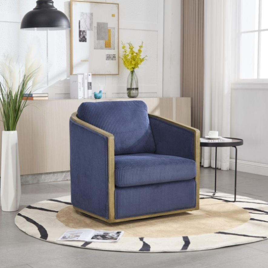 COOLMORE Corduroy Barrel Chair, Comfortable Accent Sofa Chair for Living Room, 360 Degree W395P220273