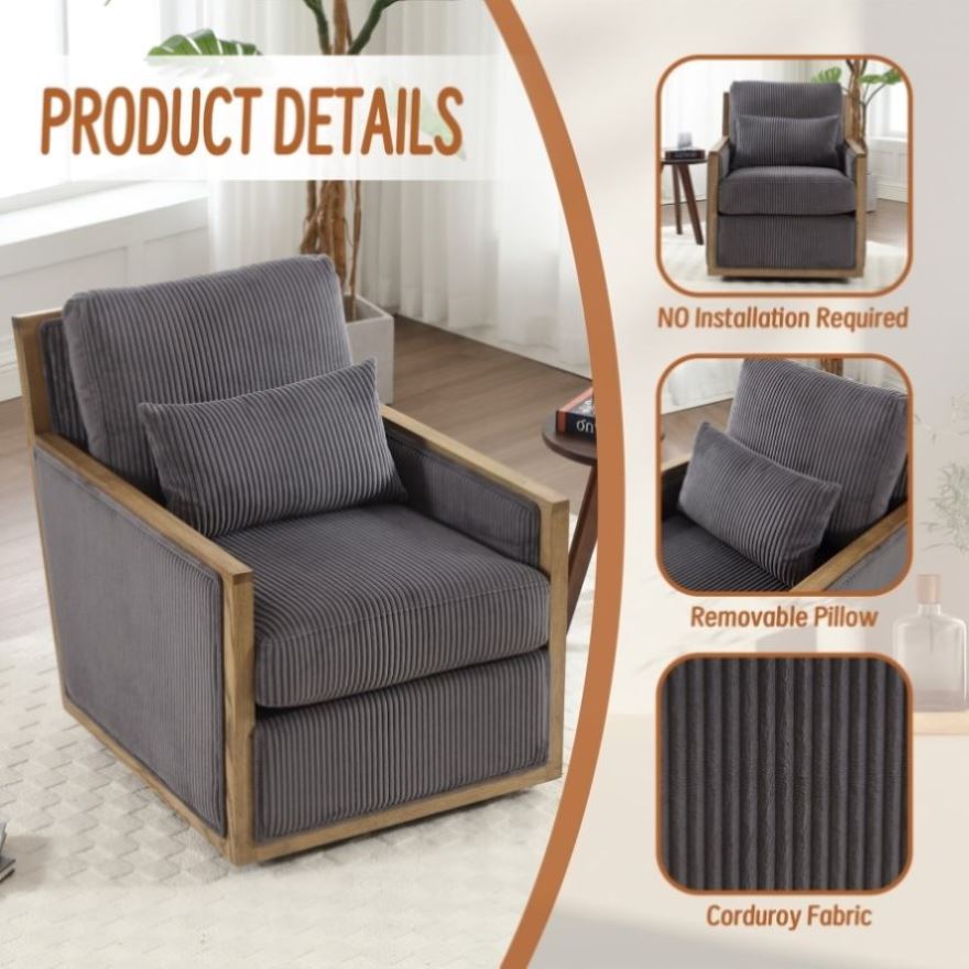 COOLMORE Corduroy Swivel Chair, Comfy Accent Sofa Chair for Living Room, 360 Degree Swivel W395P209395