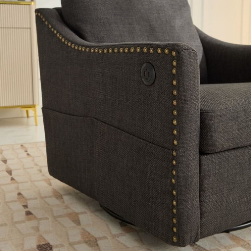 dark grey 360 degree swivel rotating accent chair with USB and magazine book for living room and W2603P169670