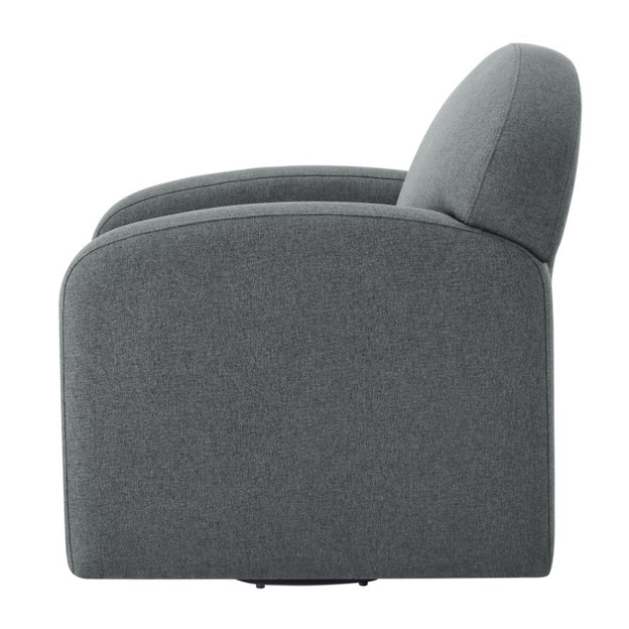Our Edie Swivel Chair is designed for modern living with a smooth 360-degree swivel and plush coil spring seats. The hemp-like fabric features a soft luster and is extremely durable and resilient. Modern barrel style