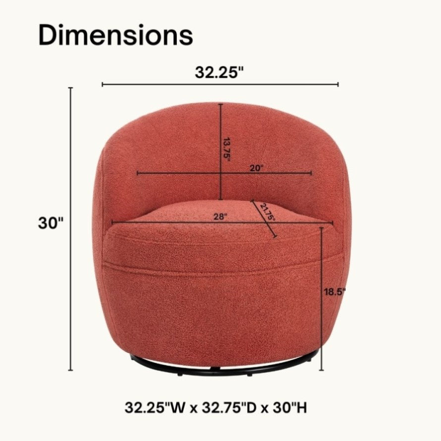 Experience the ultimate comfort and contemporary elegance with the Galleria Accent Barrel Chair. This chic piece is designed to be the centerpiece of any room, combining plush thick foam padding with luxurious teddy sherpa fabric upholstery for a truly inviting seating experience. The chair’s 360-degree swivel function ensures flexibility and ease of movement, allowing you to enjoy every corner of your living space. Supported by a sturdy metal base, this modern accent chair blends style and durability, making it an ideal addition to your home. Whether you're reading a book, entertaining guests, or simply unwinding after a long day, the Galleria Accent Barrel Chair offers both style and comfort in one beautifully designed package.