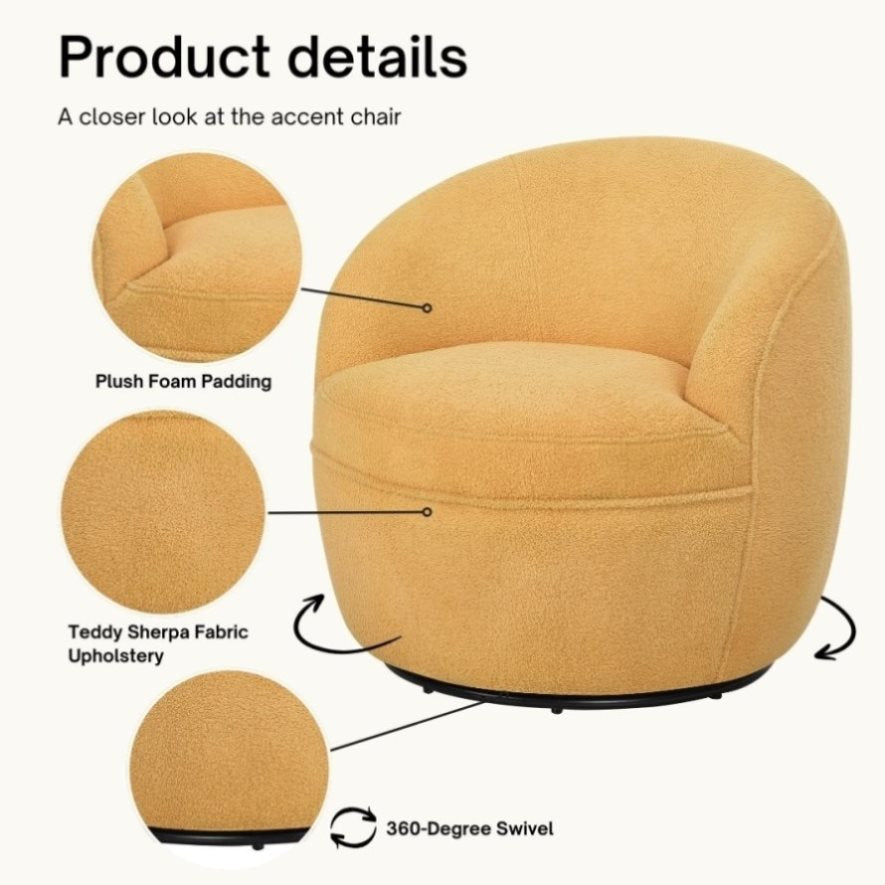 Galleria 360 Swivel Teddy Sherpa Barrel Chair, Yellow T2574P241775