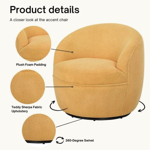 Galleria 360 Swivel Teddy Sherpa Barrel Chair-Yellow