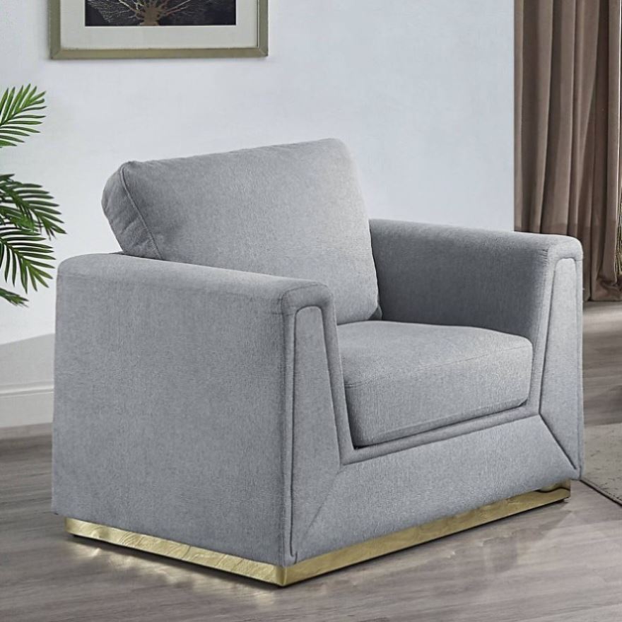 This contemporary chair effortlessly enhances any stylish space with its modern boxy frame and sleek golden metal base, adding a delightful gleam that catches the eye. Not only does it exude beauty, but its inviting comfort makes it the perfect retreat for unwinding after a long day on your feet, inviting you to sink in and relax.