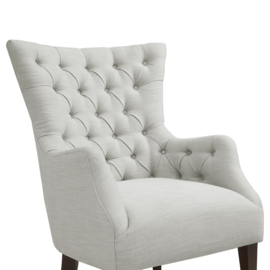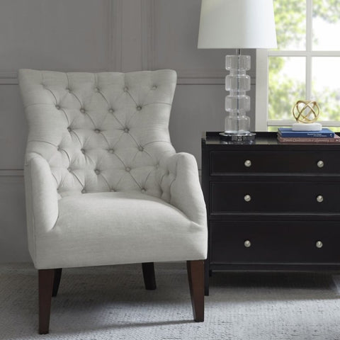 Frame Composition: Select Hardwoods and Plywood Legs/Finish: Birch Legs with Espresso Finish Fabric Composition: 70% Polyester, 20% Rayon, 10% Linen Cushion: High Density Foam Additional Features: Button Tufted Detailing