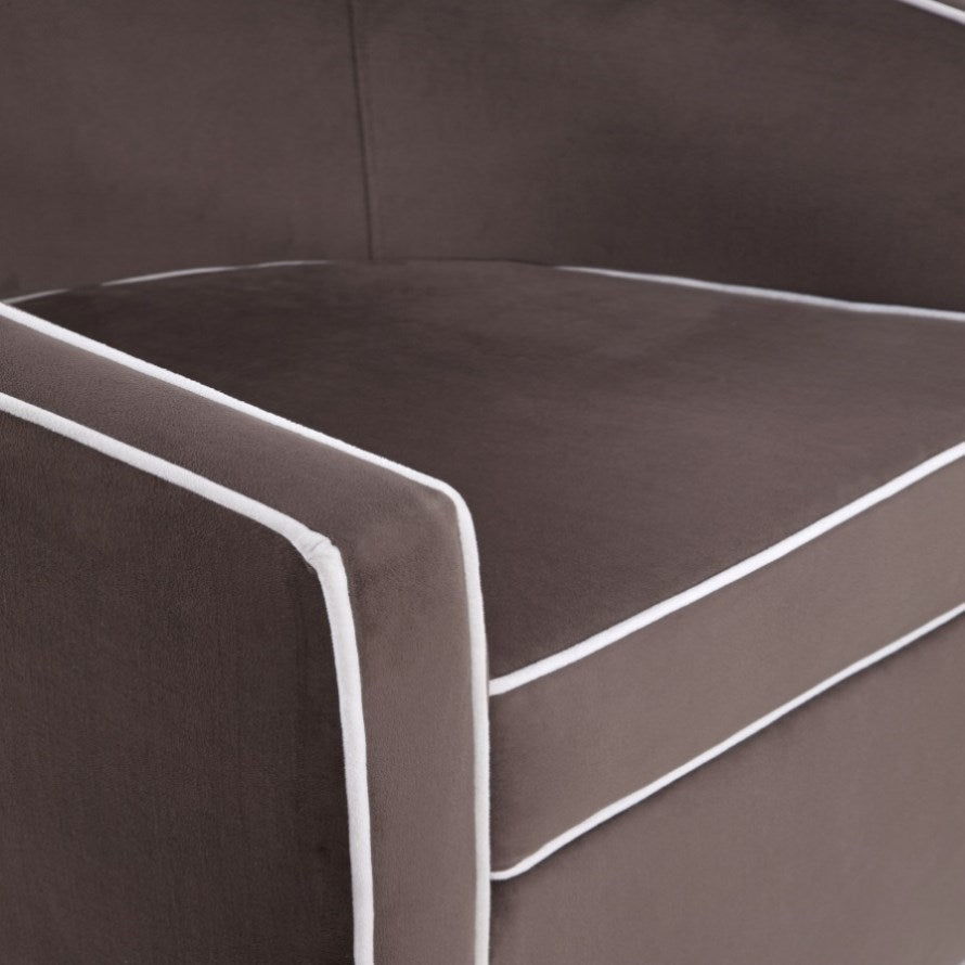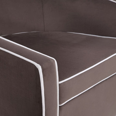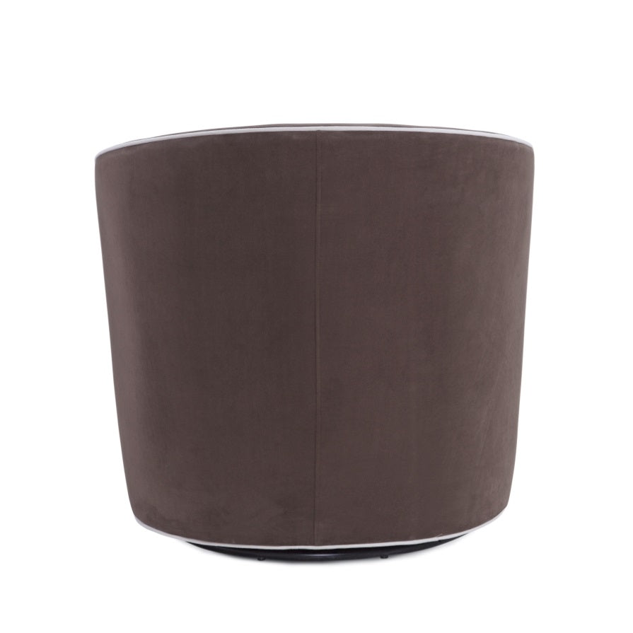 The Kendall swivel chair with contrasting welt will be the perfect accent to any room. The comfortable barrel back design is on a functional 360 degree swivel and is great in pairs or more! The luxurious velvet is stylish and up to date, while the durability ensures many years of enjoyment.