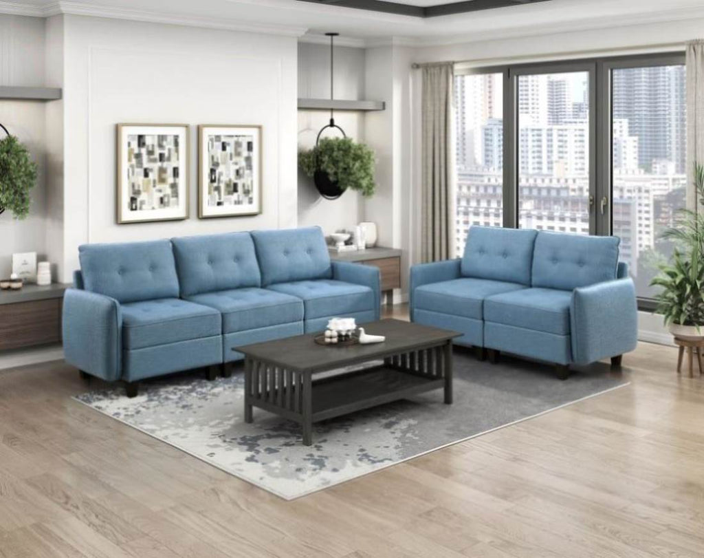 Experience the perfect blend of style, comfort, and versatility with this blue fabric modular storage chair. Designed to integrate seamlessly into a modular sectional, this chair adapts to your evolving needs. Featuring a sturdy solid wood and plywood frame, foam padding over pocket coils, and a textured fabric upholstery, it offers both durability and a luxurious seating experience. The button-tufted details add a touch of classic elegance, while the hidden storage beneath the seat provides practical decluttering. Reversible back and attached seat cushions ensure long-lasting comfort, and the removable back cushion cover simplifies cleaning. With exposed feet in a black faux wood finish and easy assembly, this chair is the perfect foundation for a customized living space.