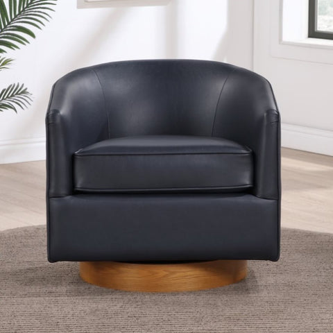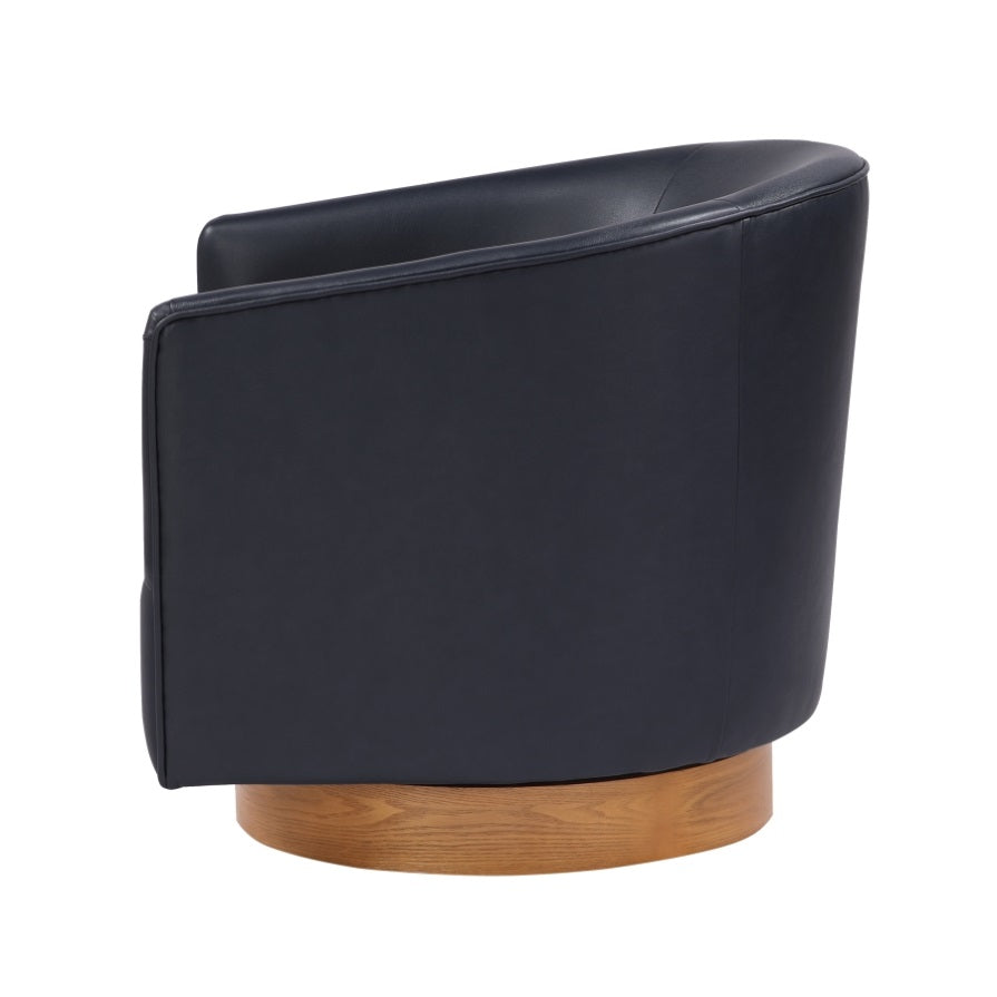 Maisy Midnight Blue Faux Leather Wood Base Barrel Swivel Chair B050P322574