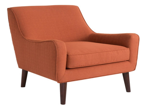Update your living room with the Madison Park Oxford Mid-Century Accent Chair. Featuring mid-century inspired curves, this chair is upholstered in a soft burnt orange fabric that adds a light contrast to the room decor. The frame is composed from select hardwoods and plywood and is elevated on smooth tapered wooden legs in espresso finish. Removable cushion, not reversible. Leg assembly required.