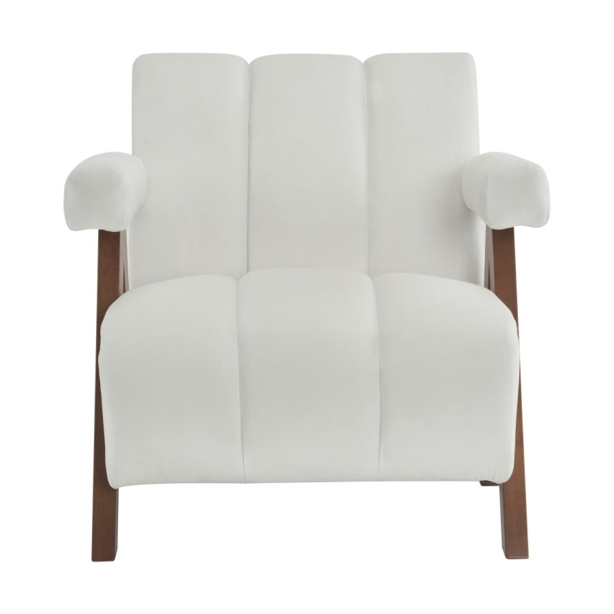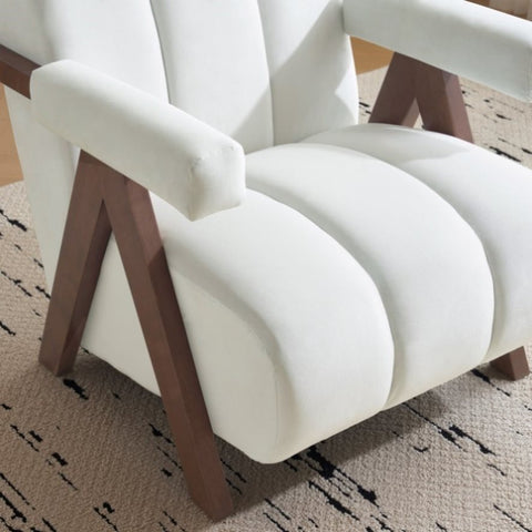 This unique and chic barrel chair ticks comfort and style with ease. The soft beige velvet upholstery perfectly accents the uncommon silhouette of this accent chair. Its stunning curved armchair features wide, rounded arms with dense cushioning nested to suit your comfort and style desires.
