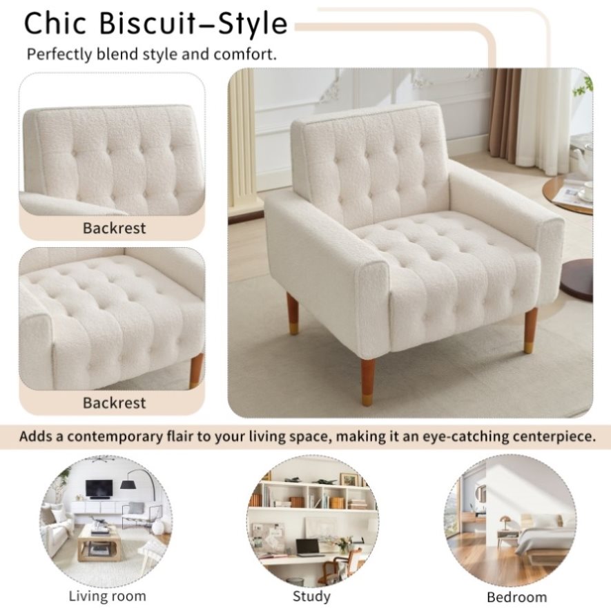 Mirod Classic Biscuit-Style Accent Chair - Comfortable Armrests, Soft Fabric, Elegant Solid Wood N760P202728A
