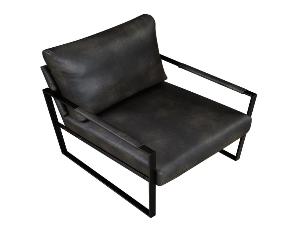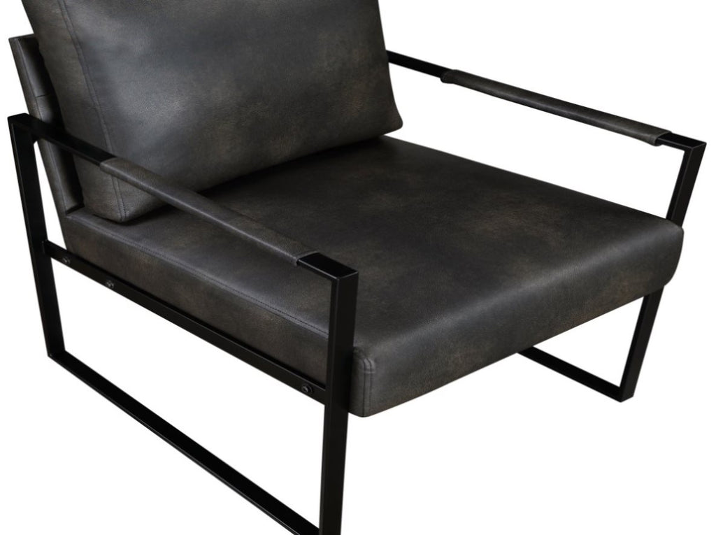 Modern Accent Chair Cushioned Seat Dark Gray Faux Leather Upholstery Black Metal Frame 1pc Style B011P255744
