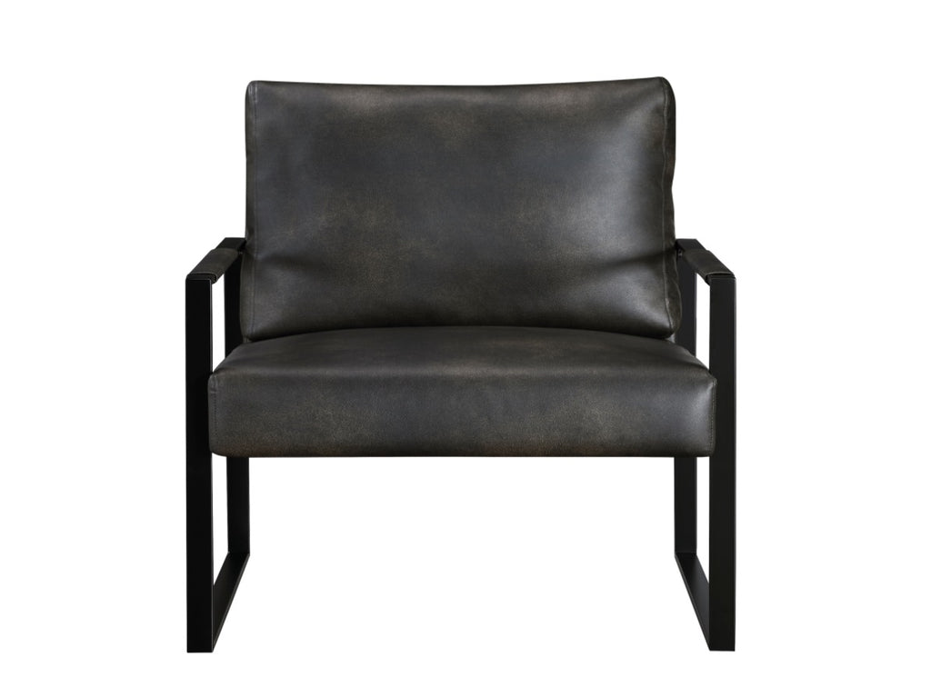 Add a touch of modern sophistication to your space with this stylish metal accent chair upholstered in sleek dark gray faux leather. Designed for both comfort and contemporary flair, this chair features a minimalist metal frame with clean lines, perfectly balancing durability and elegance. The rich gray faux leather offers a luxurious look and feel, while being easy to maintain, making it ideal for busy households. Whether used in the living room, office, or bedroom, this accent chair complements a wide range of décor styles, from industrial to modern and mid-century.