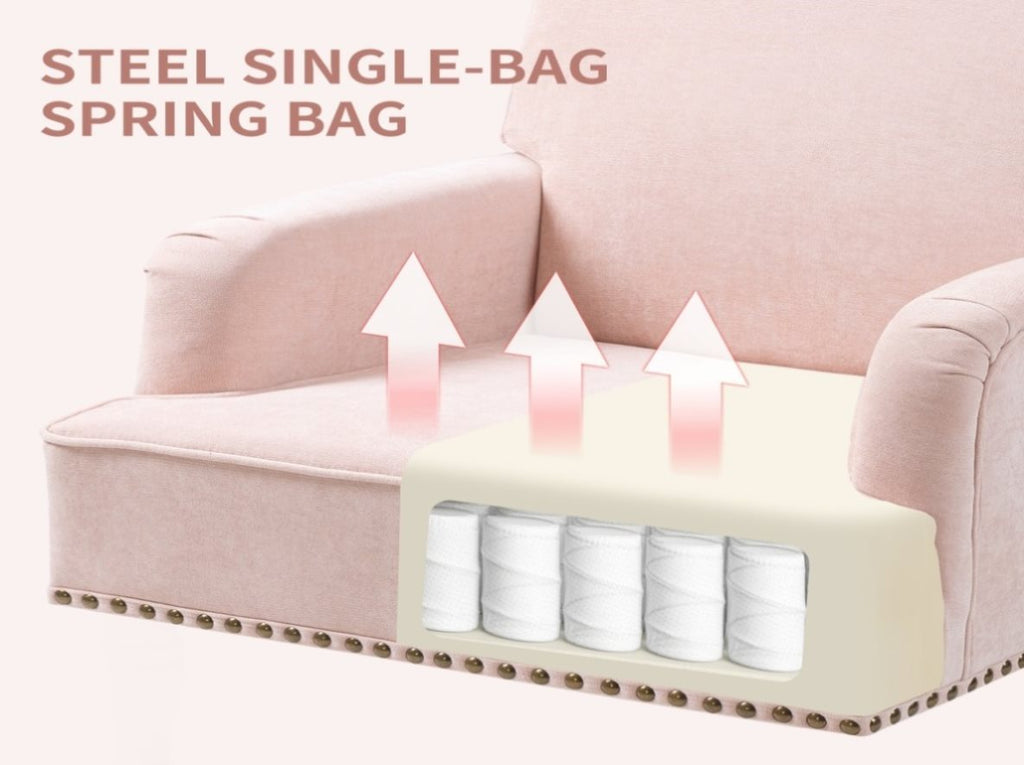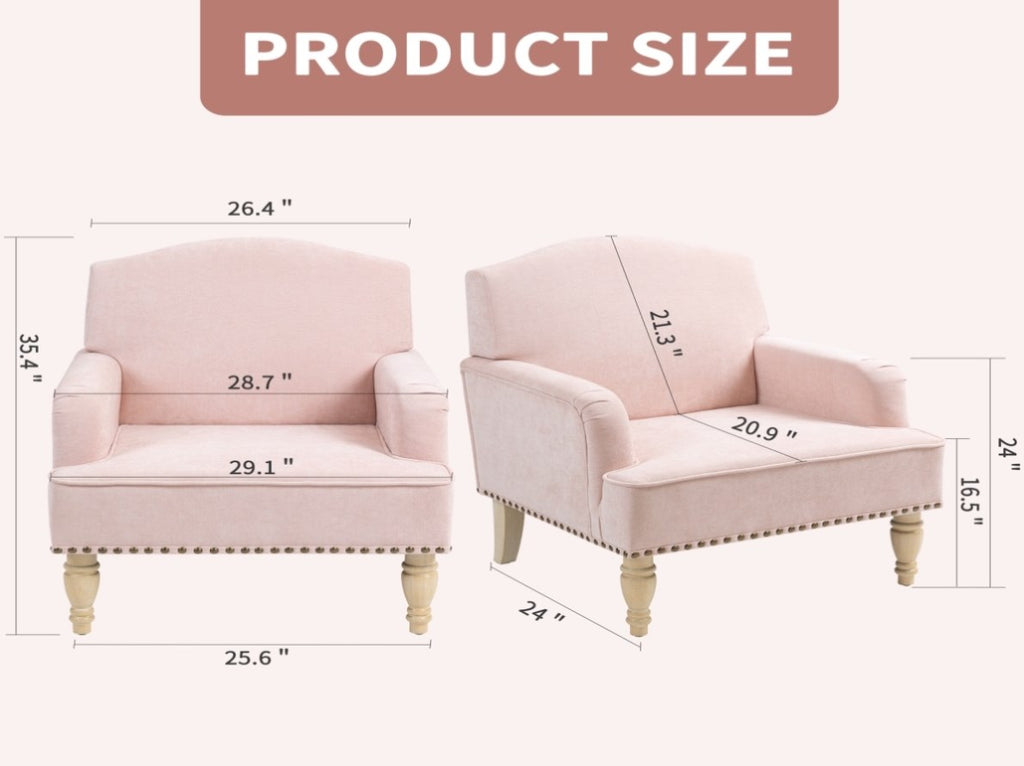 This accent armchair has a solid wooden frame structure. With wooden legs, the entire chair has super sturdiness and durability. It can hold up to 300 pounds.