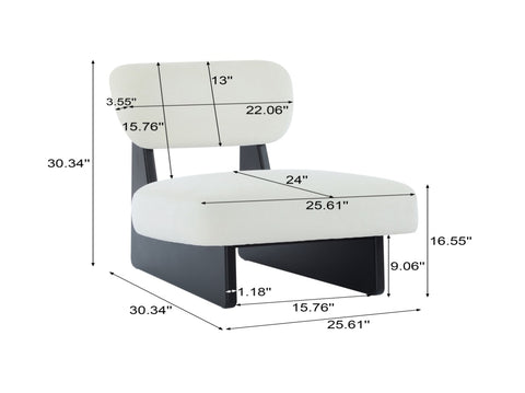 Modern Beige Lounge Chair with Polyester Upholstery, Sturdy Black Wood Base, Minimalist N767P241702B