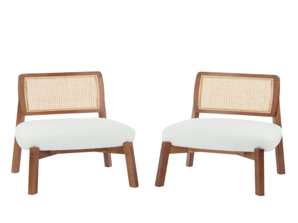 Modern Beige Lounge Chair with Woven Backrest, Sturdy Wooden Frame, Minimalist and N767P241728B