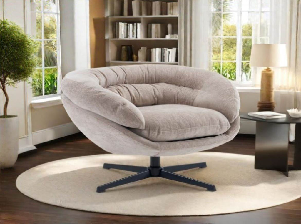 The chair's comfortable design and stylish appearance make it a perfect addition to a living room. It provides a cozy spot for reading, relaxing, or engaging in social activities. The swivel functionality allows for easy interaction with others in the room without the need to physically move.