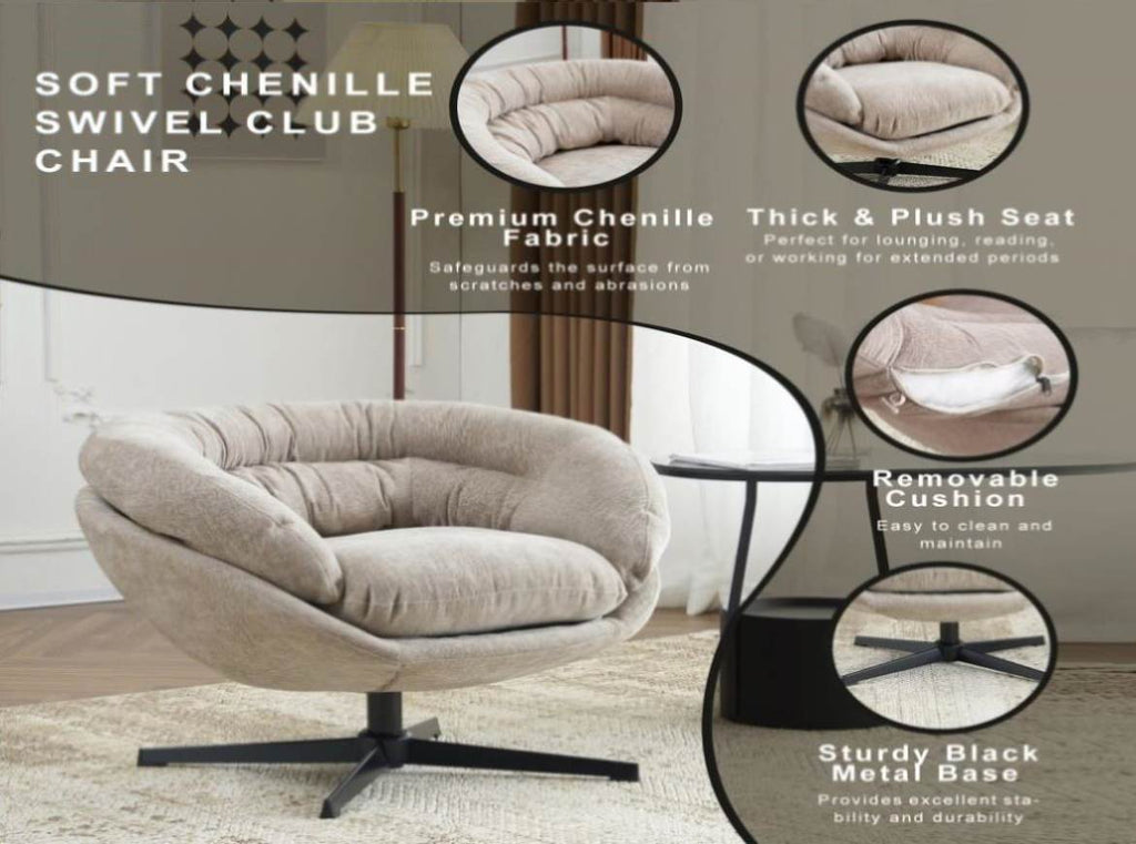 Modern Chenille Chair, 360° Swivel Club Chair/Accent Chair with Removable Cushion, Round N817P207777K