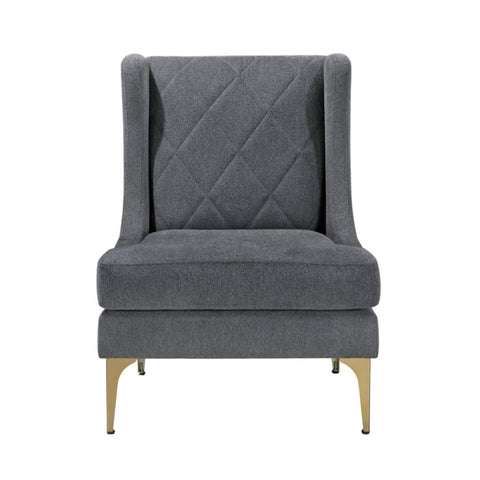 Modern Luxury Dark Gray Chenille Upholstery Wingback Accent Chair 1pc Gold Finish Metal Legs Pocket B011P308541