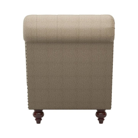 Your preference for modern traditional styling and comfort intersect in the design of the Bonne Collection. Contoured for your ultimate comfort and trimmed with traditional accents, the timeless look will be a wonderful addition to your boudoir or living room. The brown textured fabric covered chaise features button tufting, rolled bolster pillow, nailhead trim and espresso-finished turned wood legs.