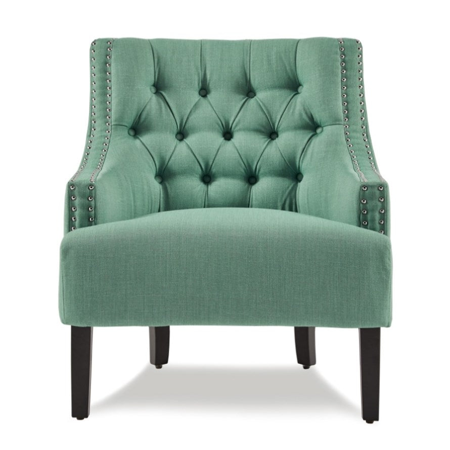Modern Traditional Accent Chair Button Tufted Teal Textured Fabric Upholstery Solid Wood 1pc Living B011P182655