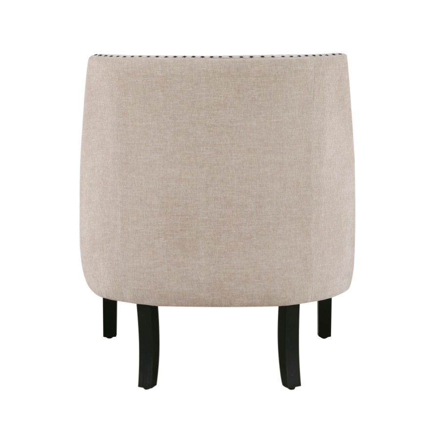 High polish nailhead accents and defines the profile of the Charisma Collection. This modern-traditional cement-hued fabric-covered accent chair provides a stylish, yet functional addition to your home.