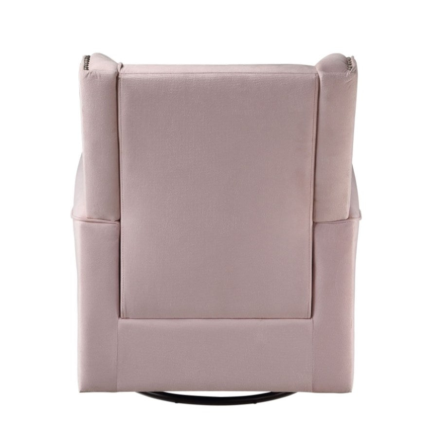 Designed for both comfort and style, this accent chair offers versatility with its swivel and glider function, enhancing your seating experience. Upholstered in pink fabric with nailhead trim detailing, it adds elegance and a pop of color to your living room or bedroom, while the removable seat cushion cover ensures easy cleaning and maintenance.
