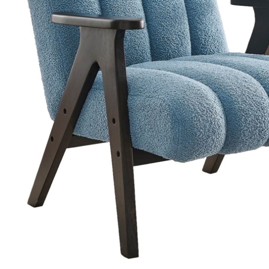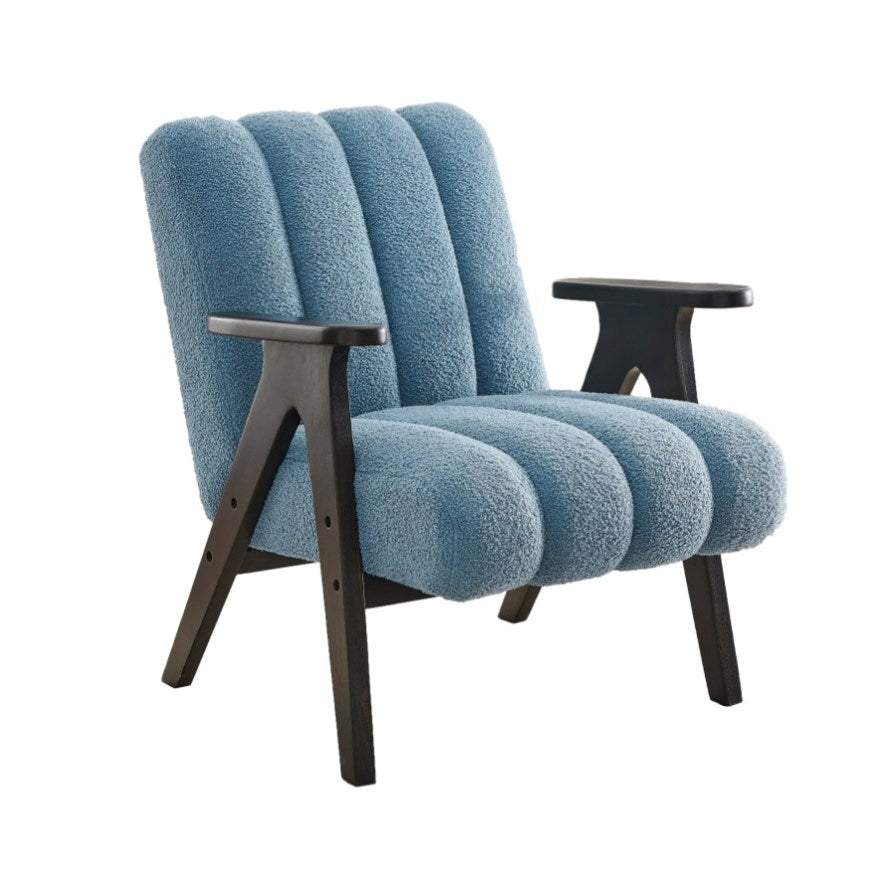 Rella Modern Teddy Sherpa Accent Chair with Espresso Wood Frame, Blue