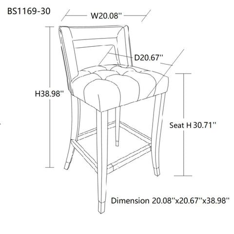 Suede Velvet Barstool with nailheads Living Room Chair2 pcs Set - 30 inch Seater height W57053833