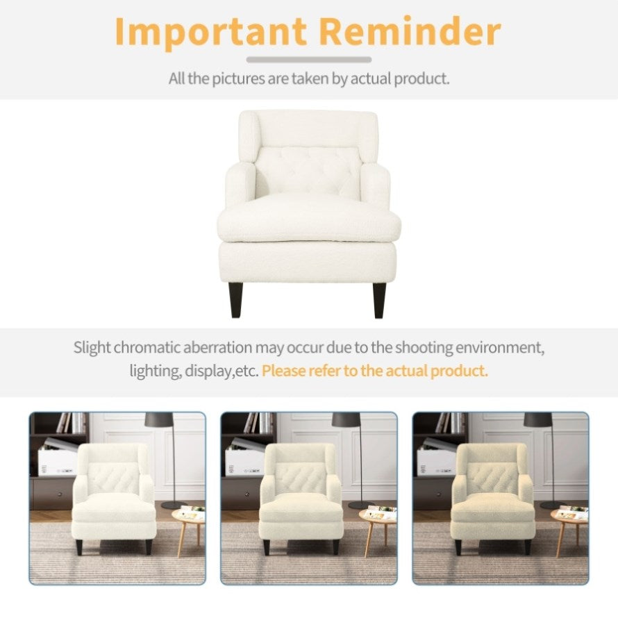 Modern Accent Chair - Our upholstered accent chair is selected premium teddy fleece fabric that is skin-friendly, soft and durable. It exudes a contemporary flair, adding a stylish touch to your space.