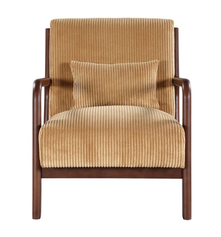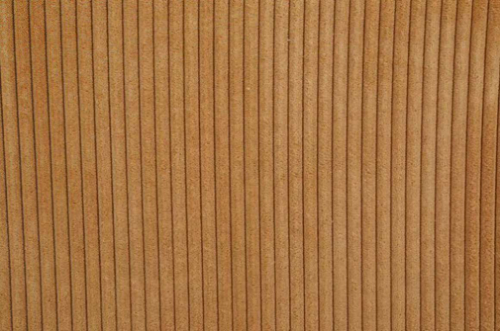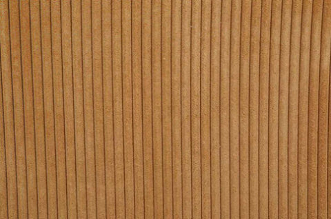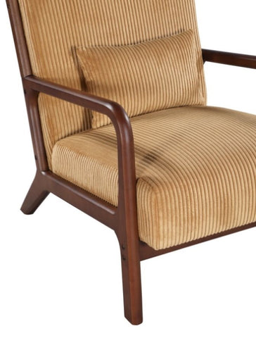 The seat and backrest are upholstered in plush, ribbed corduroy fabric in a soft tone, adding both texture and coziness.