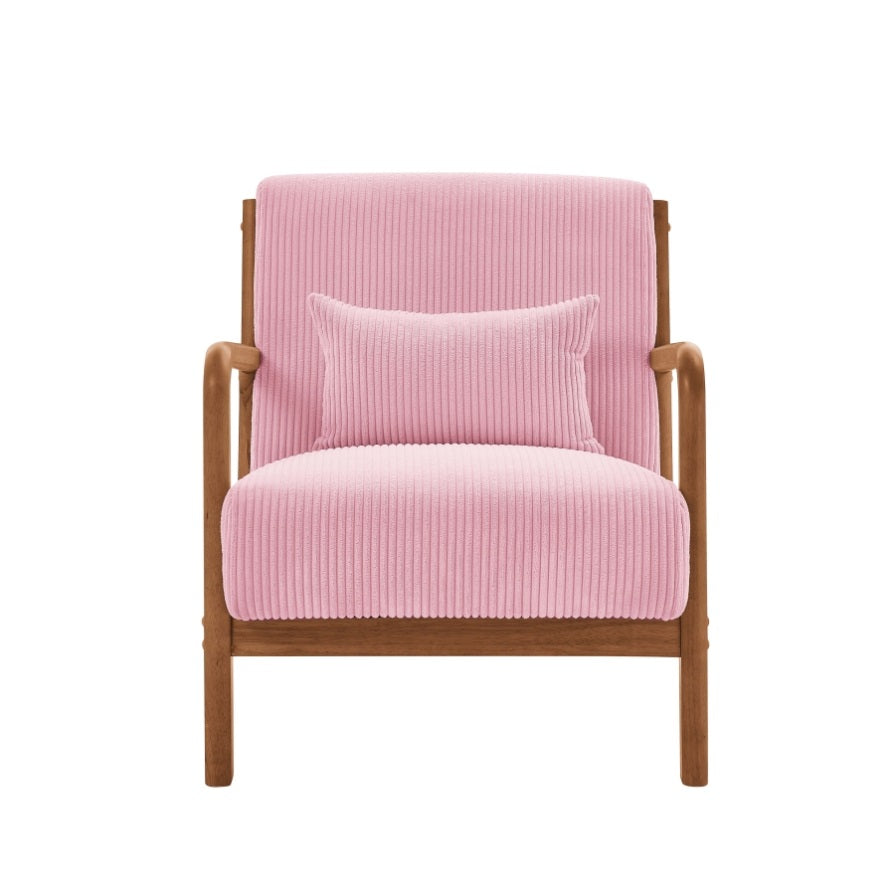 The seat and backrest are upholstered in plush, ribbed corduroy fabric in a soft tone, adding both texture and coziness.