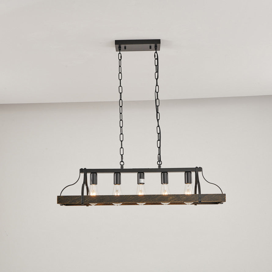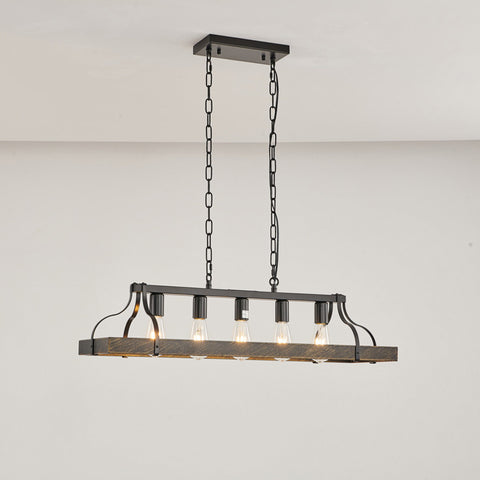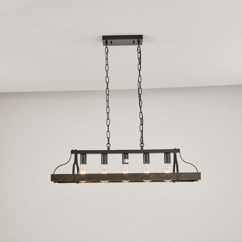 33.7-Inch Black and Gold Vintage Pendant Light, 5 E26 Bulb Sockets, Adjustable Chain Height
