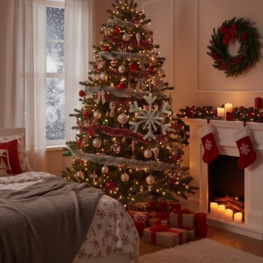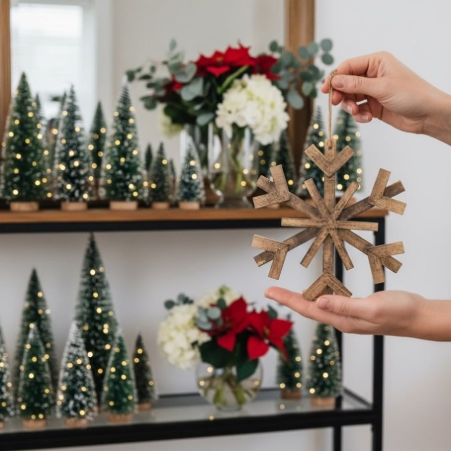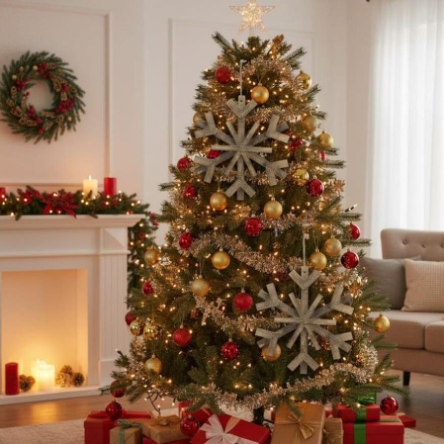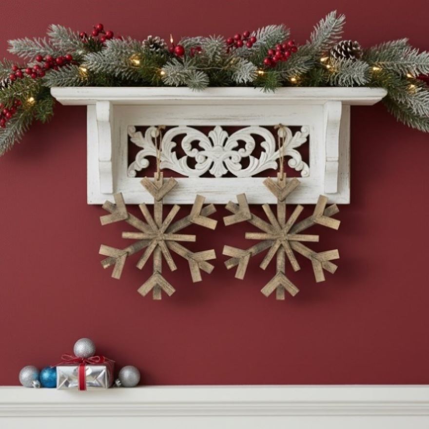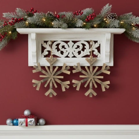 2PCS Set 17.7" Christmas Tree Decorations Large Wood Snowflake Ornaments Rustic Wall Art for Holiday 95566499