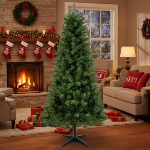 6FT Hinged Christmas Tree Artificial Plant Full PVC Branches with 582 Tips, 4-Leg Stand Indoor 86332101