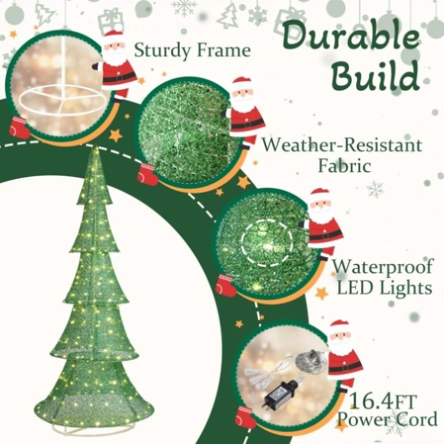 4. Weather-Resistant and Sturdy Build: Made from a durable, rustproof metal frame with waterproof fabric, the tree is designed for outdoor use, ensuring it remains a beautiful part of your holiday decor year after year.