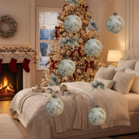 6PCS Set 3.9" Christmas Glass Ball Ornaments Hanging Decorations for Holiday Tree Party Baubles FBA 71096669