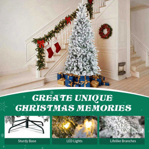 7 FT Snow Flocked Pre-lit Artificial Pencil Christmas Tree, Hinged Xmas Pine Tree with 1100 Branch 39284790