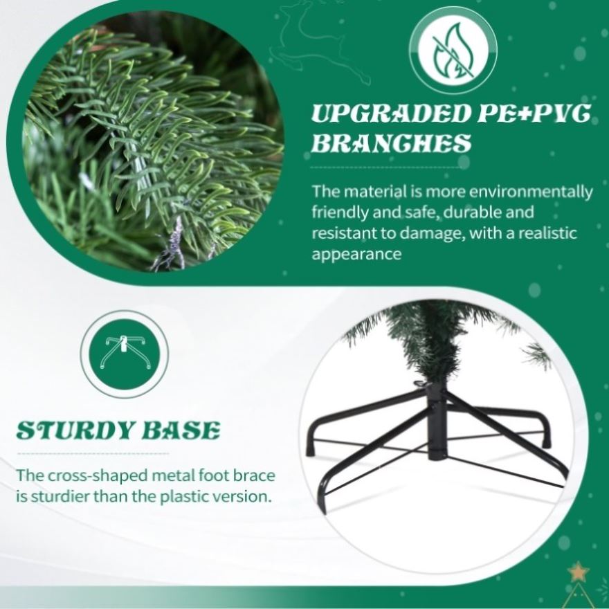 3. Built to Last: Crafted from premium quality, flame-retardant PE and PVC, this tree is built to last for many holiday seasons. The sturdy, thick branches are capable of holding Christmas ornaments, while the reinforced metal stand ensures that your tree remains stable and secure throughout the season.