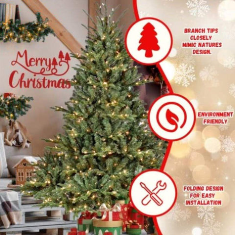 Artificial 7.5ft Green Christmas Tree with 2441 PE/PVC Mixed Branch Tips, 850L warm white led, 32231578