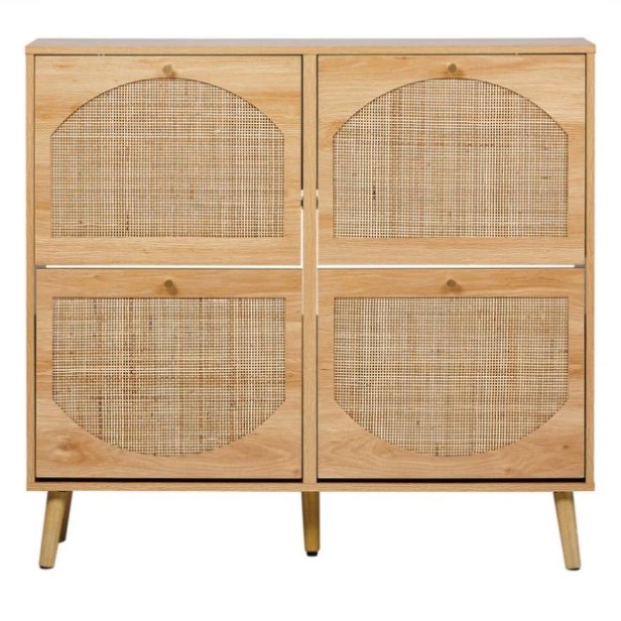 2 rows of 4 dump buckets with high feet arched rattan surface shoe cabinet density board with 90680718