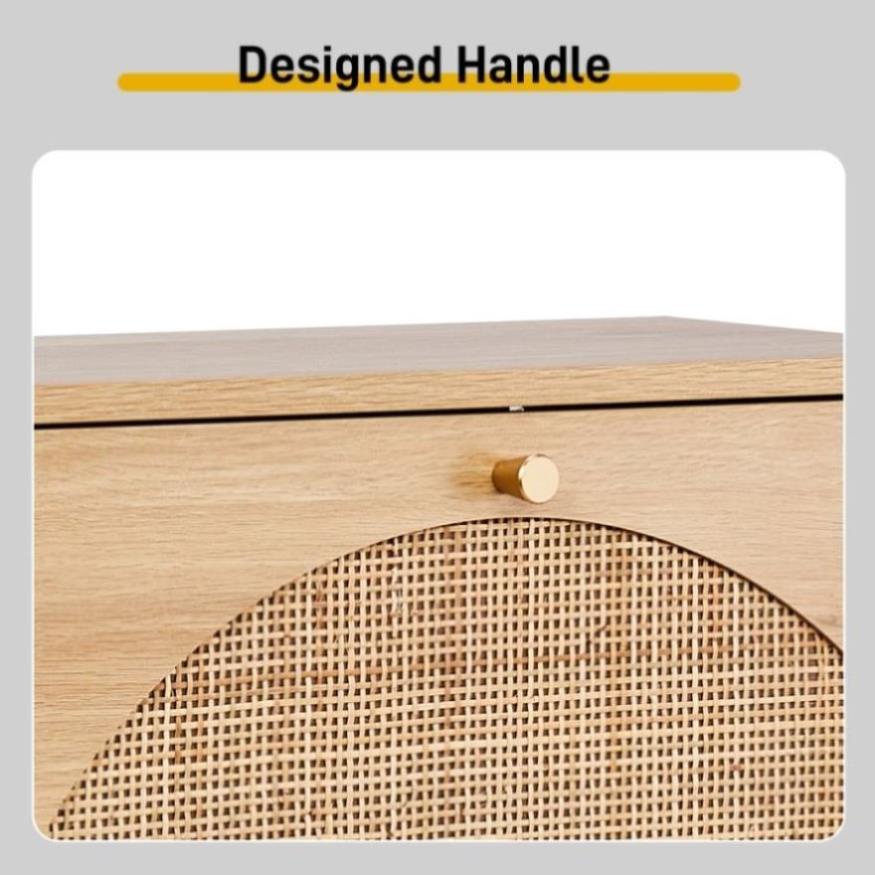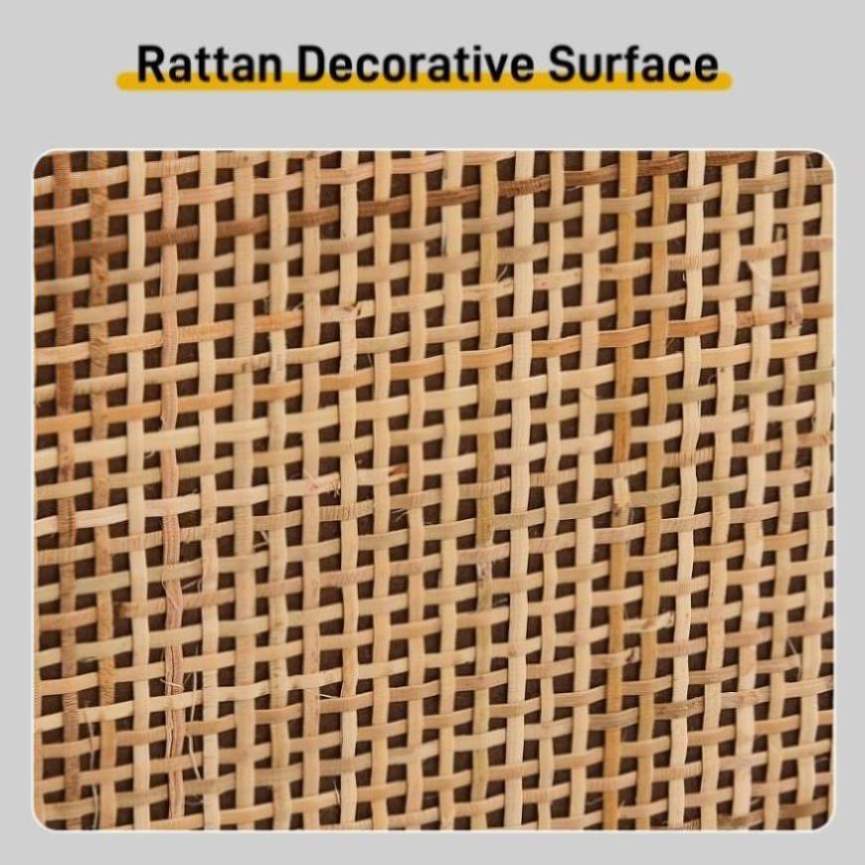 The handwoven rattan panels add natural texture and breathability to prevent odor buildup, while the elegant arched design creates visual interest. The rattan is treated for durability and complements the warm melamine finish beautifully. -