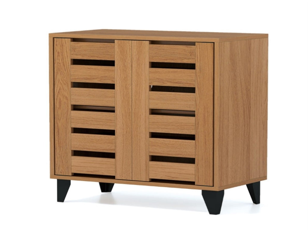 • Well-Ventilated Design: Equipped with 2 louvered doors/a left louvered door and 2 vent holes on the back panel, this shoe cabinet ensures proper airflow. The design helps prevent unpleasant smells and keeps your shoes fresh inside the storage rack.