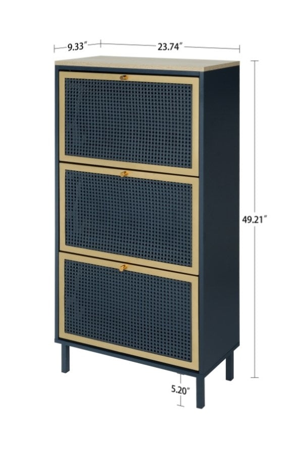 3 Metal Door Shoe Rack, Freestanding Modern Shoe Storage Cabinet, Metal rattan, for Entryway W68849315