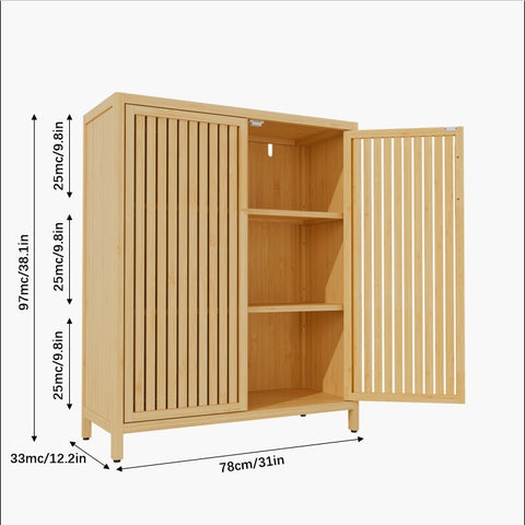 HIGH QUALITY Bamboo Shelf Cabinet: This freestanding linen tower is made from 100% natural bamboo.Compared with other materials, bamboo's toughness and wear resistance make it stronger. The thick bamboo frame has easy-to-tighten screws and can withstand heavy loads without bending or deforming easily.